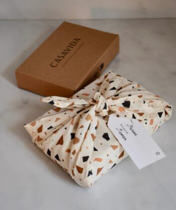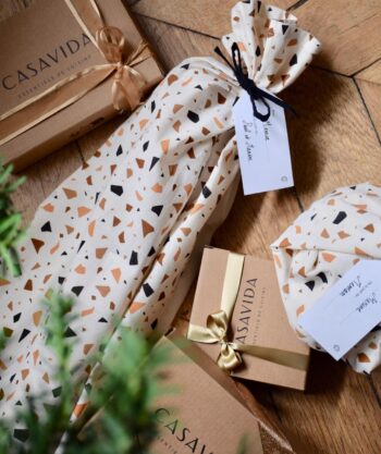 Dites adieu au rush de l’emballage des cadeaux à la dernière minute, aux papiers jamais assortis, impossibles à découper et plier correctement et jetés en moins de 2min chrono à l’ouverture des cadeaux… Casavida a pensé à tout, jusqu’à ces emballages Design, Utiles & Durables. Furoshiki ou pochette, choisissez le format qui vous convient et emballez, ré-emballez, ré-ré-emballez !