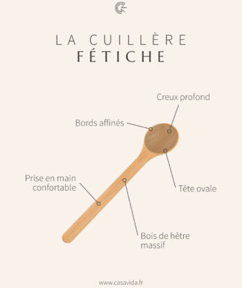 La Cuillère Fétiche, la cuillère de cuisine en bois bien creuse qui facilite le service.