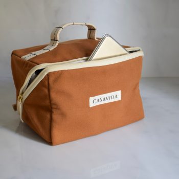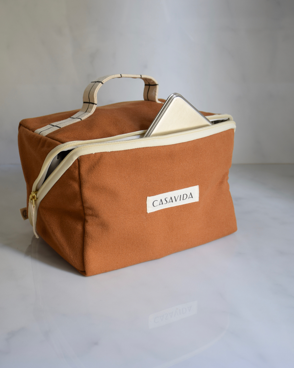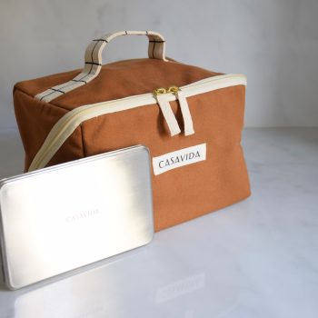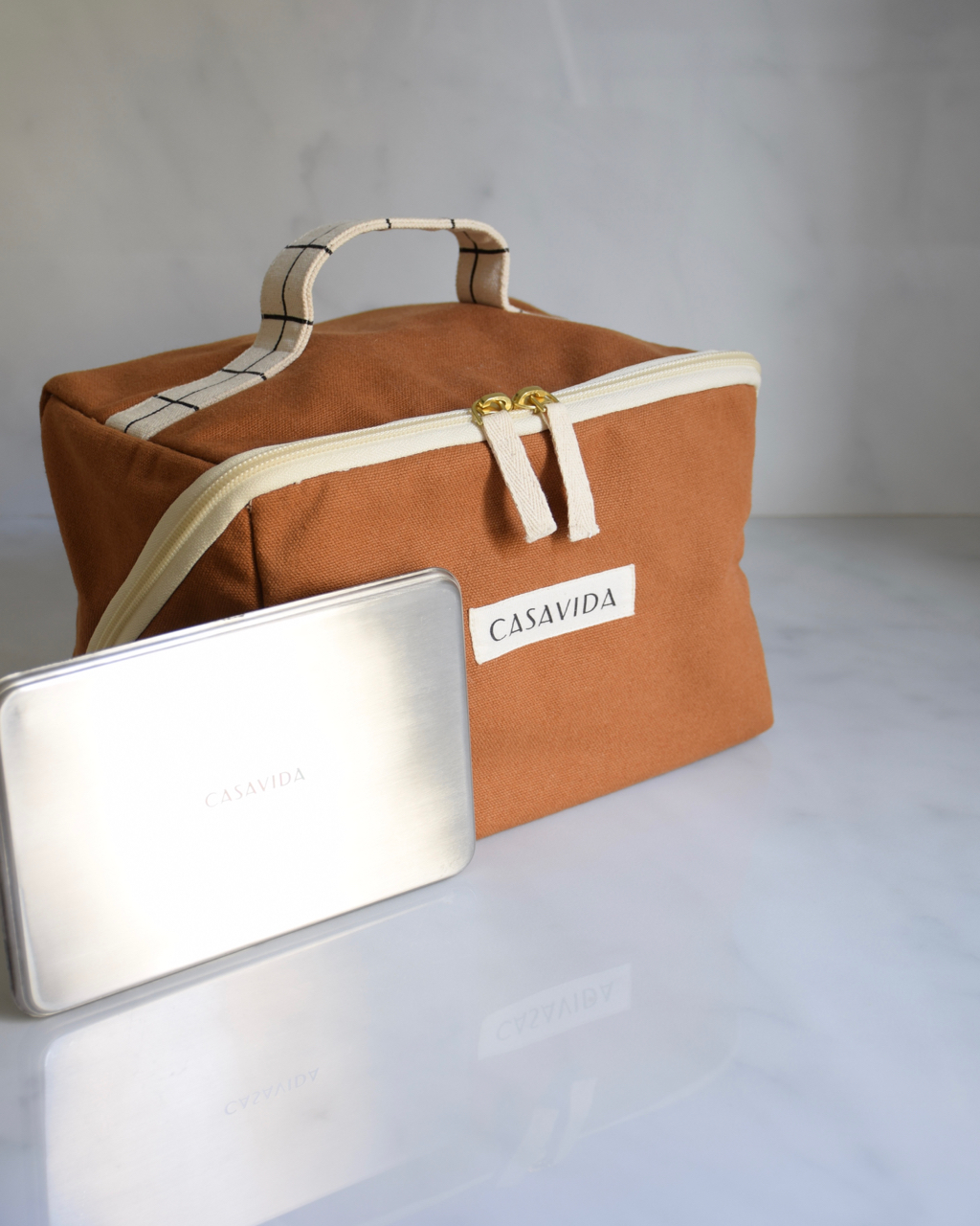 Transportez votre déjeuner au frais et avec style grâce au Vanity Cool ! Compact, ni trop petit, ni trop grand, cette trousse isotherme composée de 2 couches de jutes isolantes vous permet d’emporter tout ce que vous souhaitez pour votre lunch: 1 à 2 boites hermétiques, yaourt, petite gourde, fruit, dessert, snack. Equipé de compartiments pour y glisser le pain de glace, une serviette de table & des couverts, le Vanity Cool est étudié pour garder votre déjeuner rangé et bien à plat quand vous le glissez dans l’Irremplaçable Cabas (ou autre sac de votre choix). Il n’y a plus qu’à partager votre secret avec vos collègues: Le Vanity Cool Casavida !
