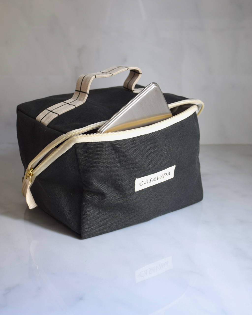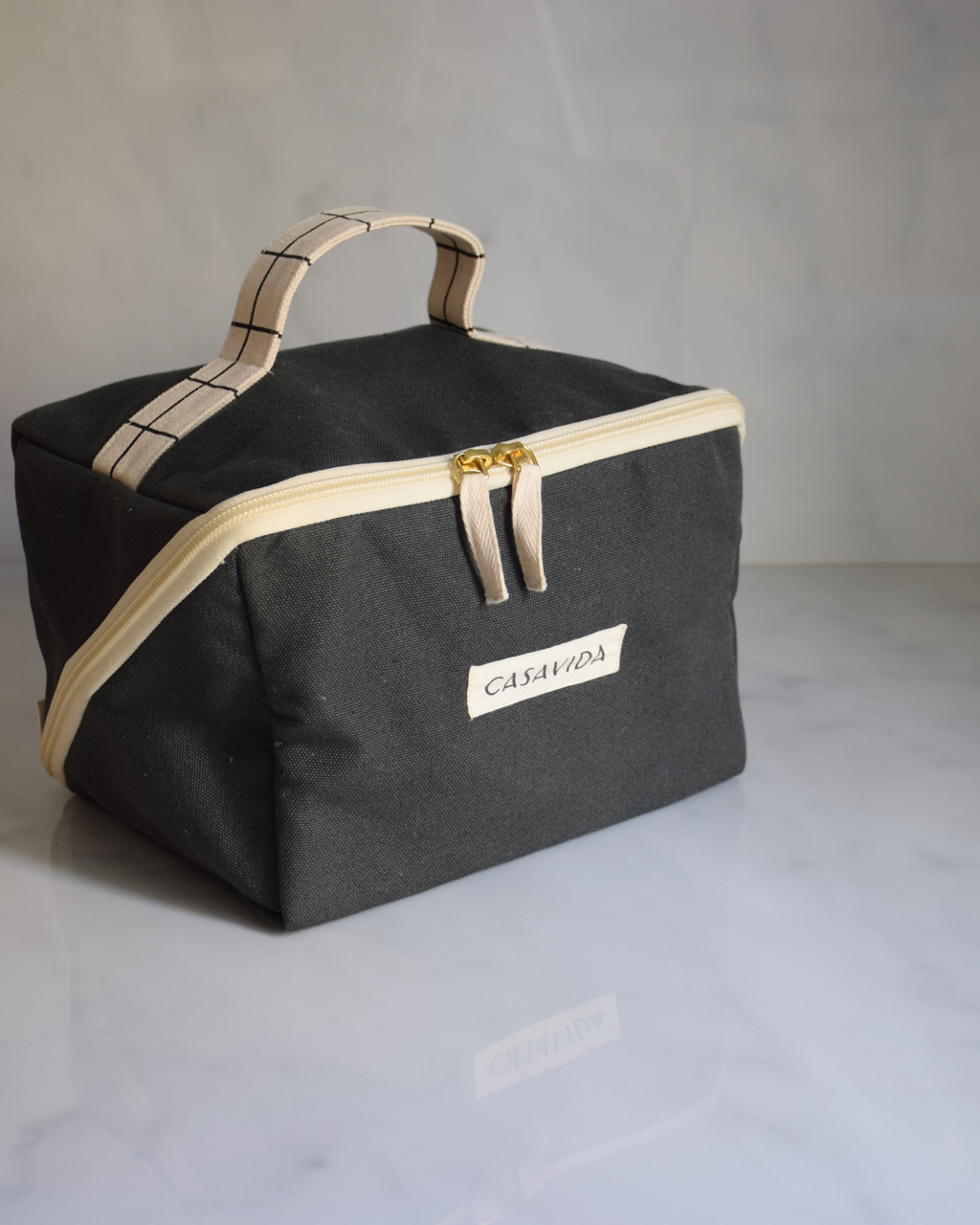 J'adore son rendu trop beau avec la poignée à carreaux Casavida et c'est un vrai plaisir pour organiser les produits qu'on y glisse! Je n'en ai personnellement pas besoin pour le déjeuner mais je l'utilise déjà pour les goûters des enfants. J'aurais adoré l'avoir pour transporter les repas de bébé pendant la diversification."