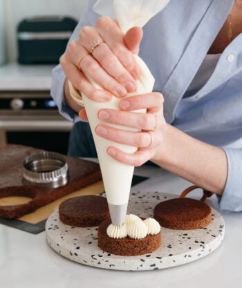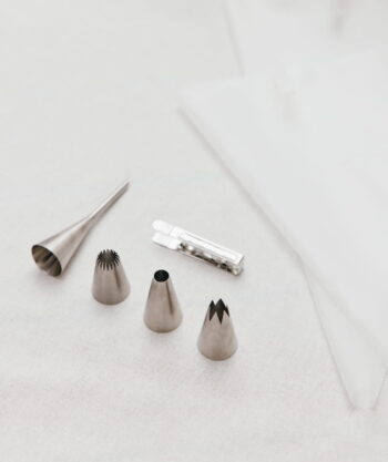 « La sélection ultime de douilles, si vous n’avez que 4 douilles, cela devrait être celles-là ! Après des années de pâtisserie, ce sont les seules que j’utilise vraiment. J’ai aussi choisi les poches à douilles en silicone à la fois faciles à utiliser et à nettoyer et vraiment résistantes pour les réutiliser des centaines de fois (j’ai les miennes depuis 5 ans).»