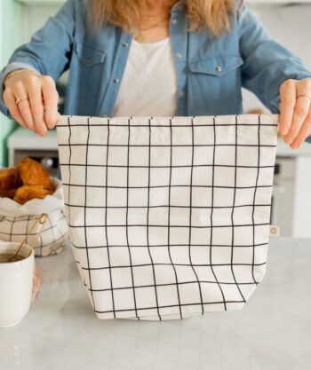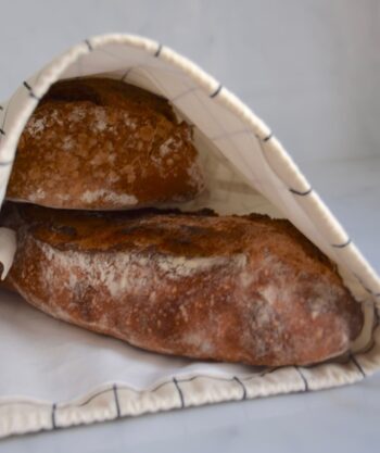 Un joli sac à pain multi-fonction (transport, conservation, corbeille de présentation) qui se glisse avec style dans votre Irremplaçable Cabas. Avec sa doublure résistante à l’eau, il garde votre pain au sec, frais, et ne se tâche pas si vous y glissez des viennoiseries ou autres fougasses bien grasses. Utilisez-le pour transporter vos produits boulangers, les conserver et même les présenter sur votre tablée dominicale!