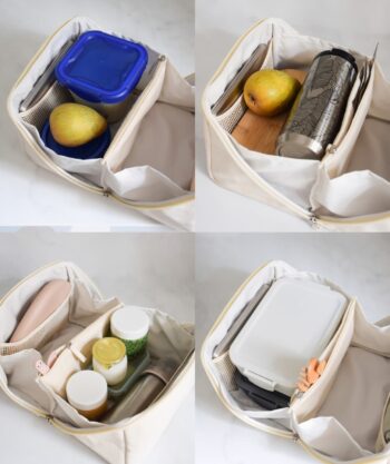 - Multi-usage: Pour garder les repas au frais (ou chaud si on y ajoute pas le pain de glace), pour transporter les repas de bébé, les goûters des enfants ou en vanity pour produits de beauté…