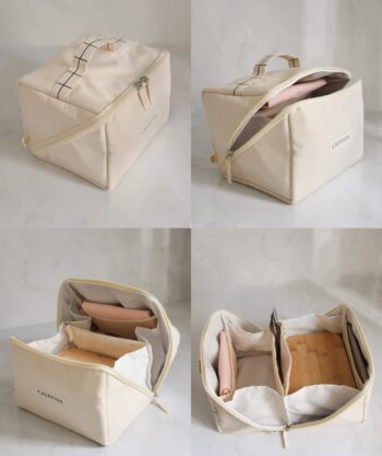 Transportez votre déjeuner au frais et avec style grâce au Vanity Cool ! Compact, ni trop petit, ni trop grand, cette trousse isotherme composée de 2 couches de jutes isolantes vous permet d’emporter tout ce que vous souhaitez pour votre lunch: 1 à 2 boites hermétiques, yaourt, petite gourde, fruit, dessert, snack. Equipé de compartiments pour y glisser un pain de glace, une serviette de table & des couverts, le Vanity Cool est étudié pour garder votre déjeuner rangé et bien à plat quand vous le glissez dans l’Irremplaçable Cabas (ou autre sac de votre choix). Il n’y a plus qu’à partager votre secret avec vos collègues: Le Vanity Cool Casavida !